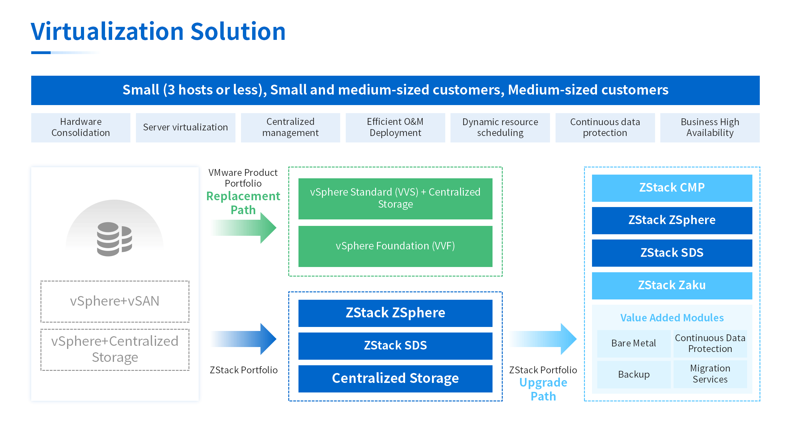 The ZStack product portfolio covers data center cloud infrastructure, making replacement and migration easy.